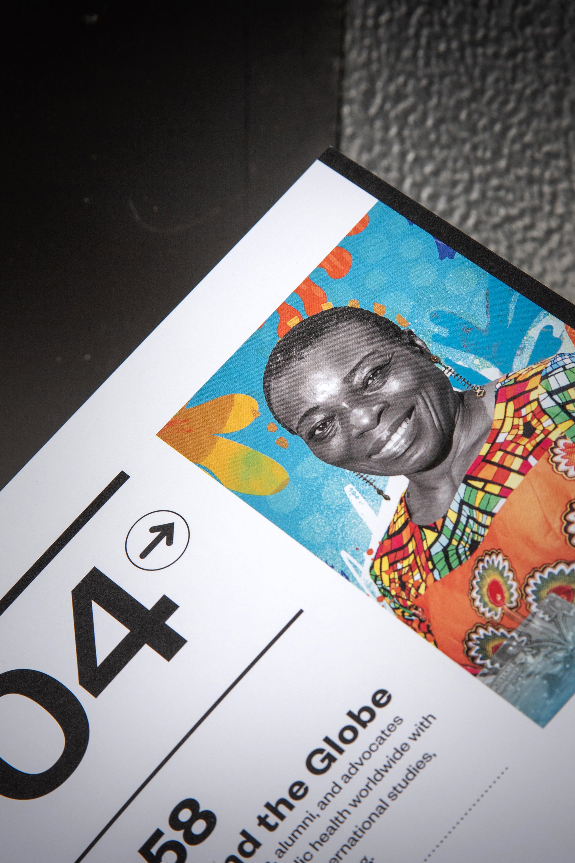 We created a surprising effect by adding bar-code edges to the spreads. By bending the magazine in both directions, the school’s motto as well as the publications annual theme is revealed.